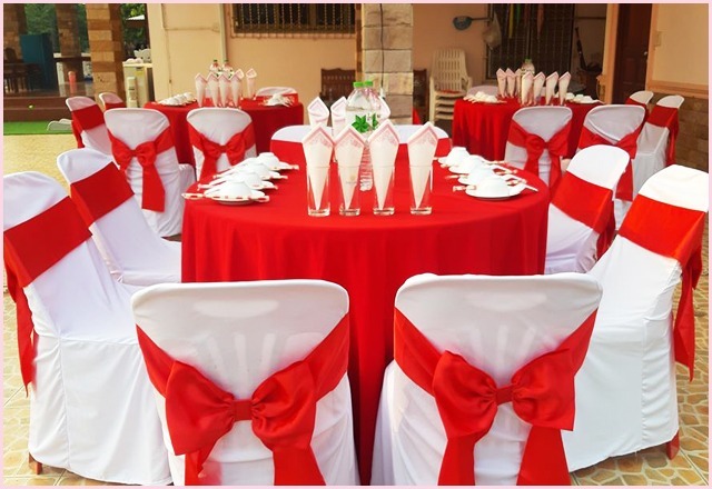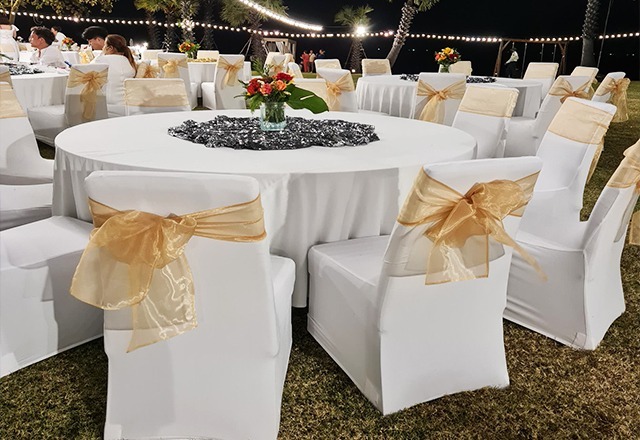 งานเลี้ยง งานพิธีต่างๆ จำเป็นต้องจัดเตรียมสถานที่ให้สวยงาม โดยเฉพาะโต๊ะรับแขกหน้างาน โต๊ะเก้าอี้รับรองผู้ร่วมงาน โต๊ะรับประทานอาหาร โต๊ะจีนการคลุมโต๊ะเก้าอี้ ด้วยผ้าตามโทนสีที่เหมาะสม จึงช่วยส่งเสริมบรรยากาศให้สวยงาม เป็นระเบียบเรียบร้อย ดีกว่าจะเผยให้เห็นความไม่สมบูรณ์หรือความแตกต่างของสีหรือสภาพโต๊ะเก้าอี้ที่ไม่ได้คลุมผ้า และประหยัดกว่าการซื้อโต๊ะเก้าอี้ใหม่